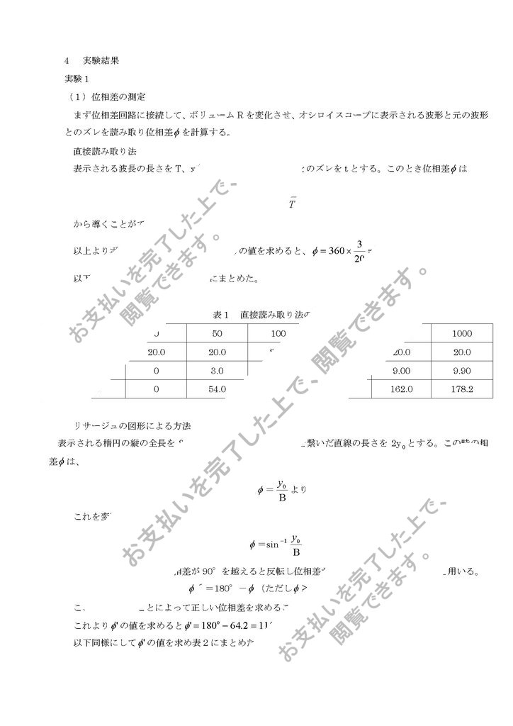 まず位相差回路に接続して、ボリュームRを変化させ、オシロイスコープに表示される波形と元の波形とのズレを読み取り位相差 を計算する。