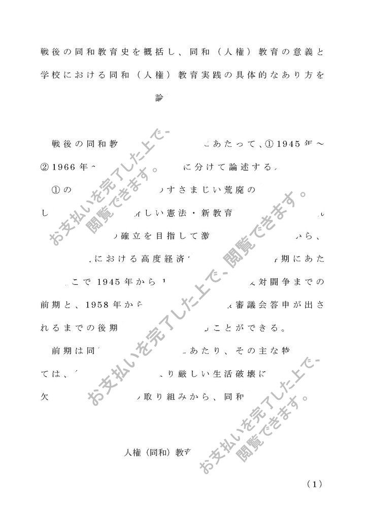 戦後の同和教育史を概括し、同和(人権)教育の意義と学校における同和(人権)教育実践の具体的なあり方を論述せよ。