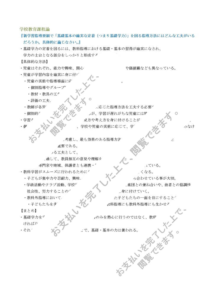 『新学習指導要領で「基礎基本の確実な定着(つまり基礎学力)」を図る指導方法にはどんな工夫がいるだろうか。具体的に論じなさい。』