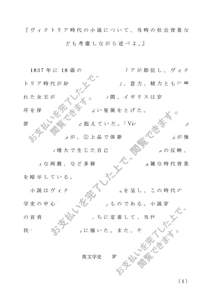 『ヴィクトリア時代の小説について、当時の社会背景なども考慮しながら述べよ。』