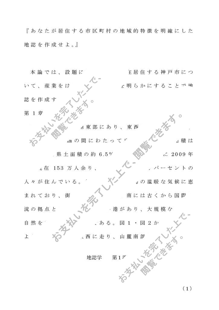 本論では、設題に沿って私が現在居住する神戸市について、産業をはじめとする特徴を明らかにすることで地誌を作成する。