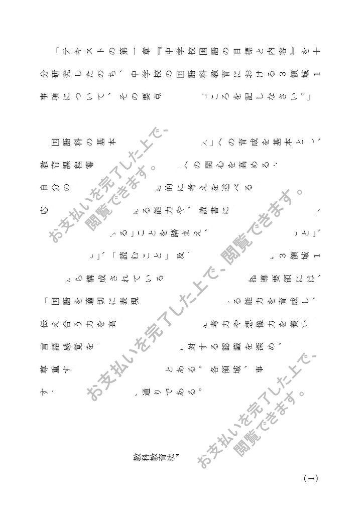 「テキストの第一章『中学校国語の目標と内容』を十分研究したのち、中学校の国語科教育における3領域1事項について、その要点となるところを記しなさい。」