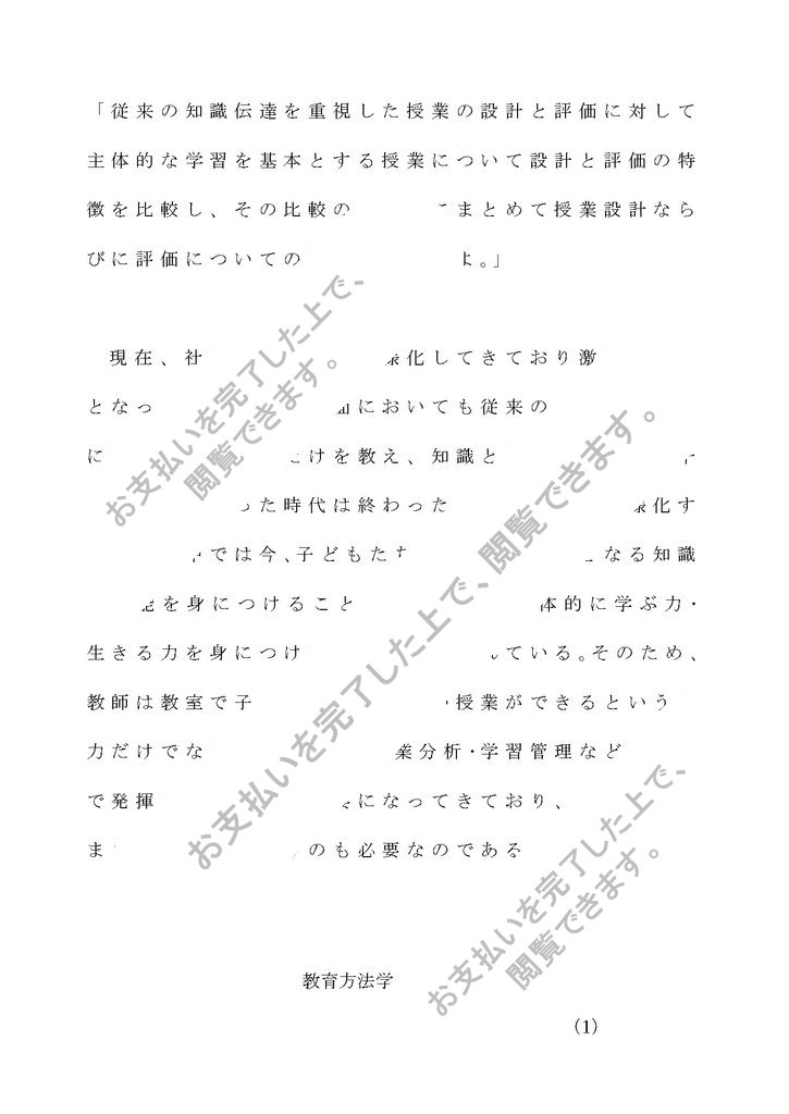 「従来の知識伝達を重視した授業の設計と評価に対して主体的な学習を基本とする授業について設計と評価の特徴を比較し、その比較の視点毎にまとめて授業設計ならびに評価についての留意点を述べよ。」