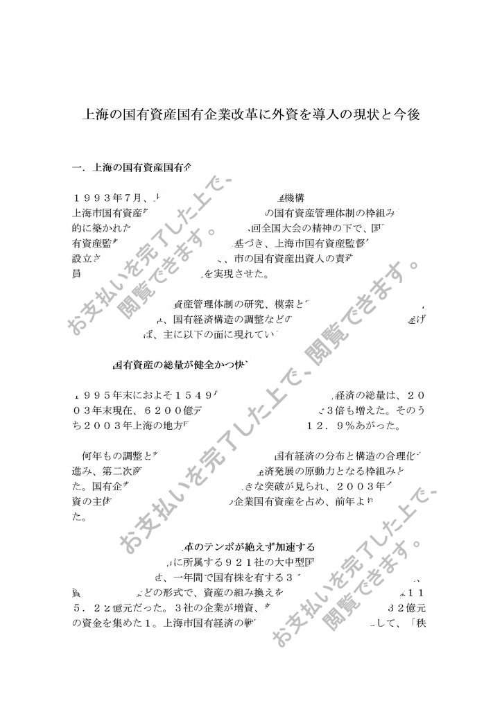 上海の国有資産国有企業改革に外資を導入の現状と今後