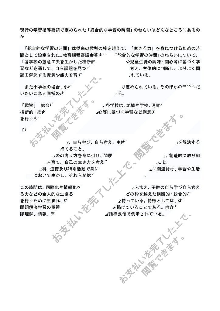 現行の学習指導要領で定められた「総合的な学習の時間」のねらいはどんなところにあるのか