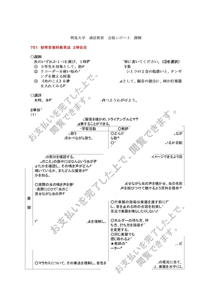 明星大学 通信教育 合格 レポート 751 初等音楽科教育法2単位目