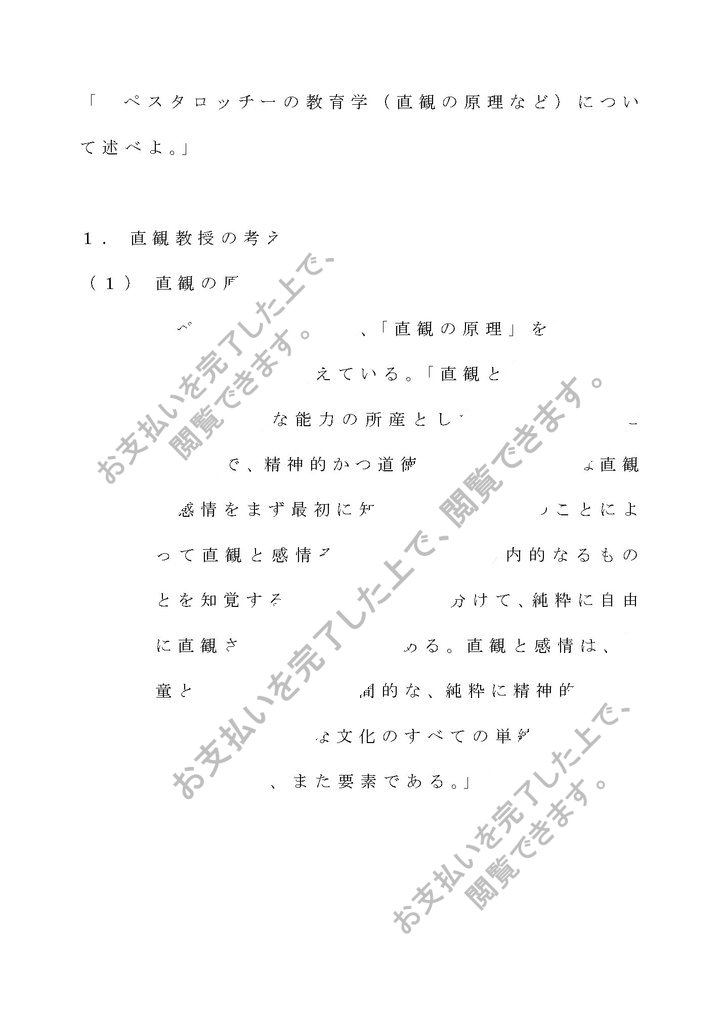 「 ペスタロッチーの教育学(直観の原理など)について述べよ。」