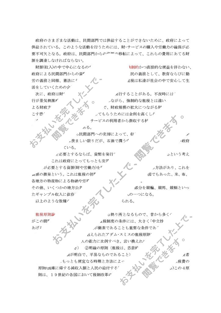 政府の収入にはどのようなものがあるかを整理しなさい。また租税の特性についてのべ、租税原則論が時代とおもにどのように変化を遂げたのかについて①アダムスミス②ワグナー③マスグレイブの考え方を紹介しながらのべなさい