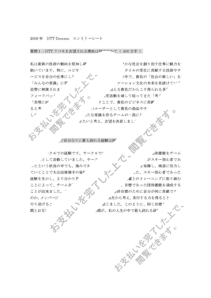 2009年 NTT Docomo エントリーシート