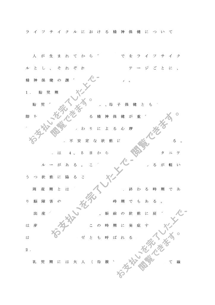 人が生まれてから死ぬまでをライフサイクルとし、それぞれのライフステージごとに、精神保健の課題と特徴がある。
