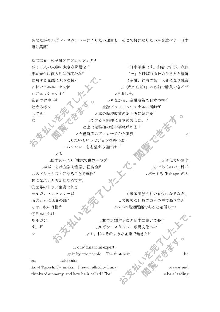 あなたがモルガン・スタンレーに入りたい理由と、そこで何になりたいかを述べよ(日本語と英語)