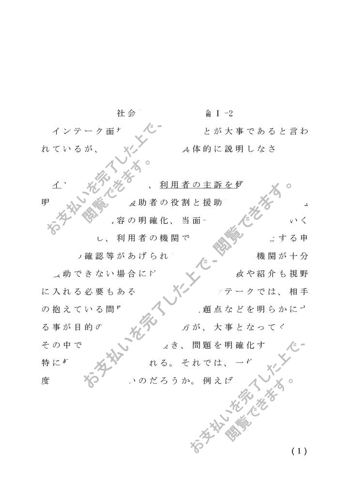通信教育のレポートです。あくまで参考にお願いします。一部変えただけや、そのまま写したりは、違反になり処罰の対象となります。社会福祉援助技術論Ⅰ-2(インテーク面接では傾聴することが大事であると言われているが、傾聴とは何か、具体的に説明をしている。)