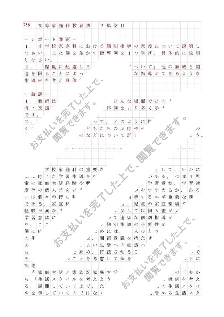 758 初等家庭科教育法 2単位目
