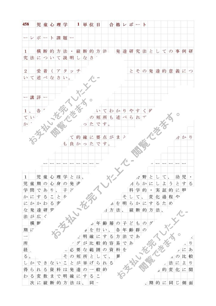 458 児童心理学 1単位目 合格レポート