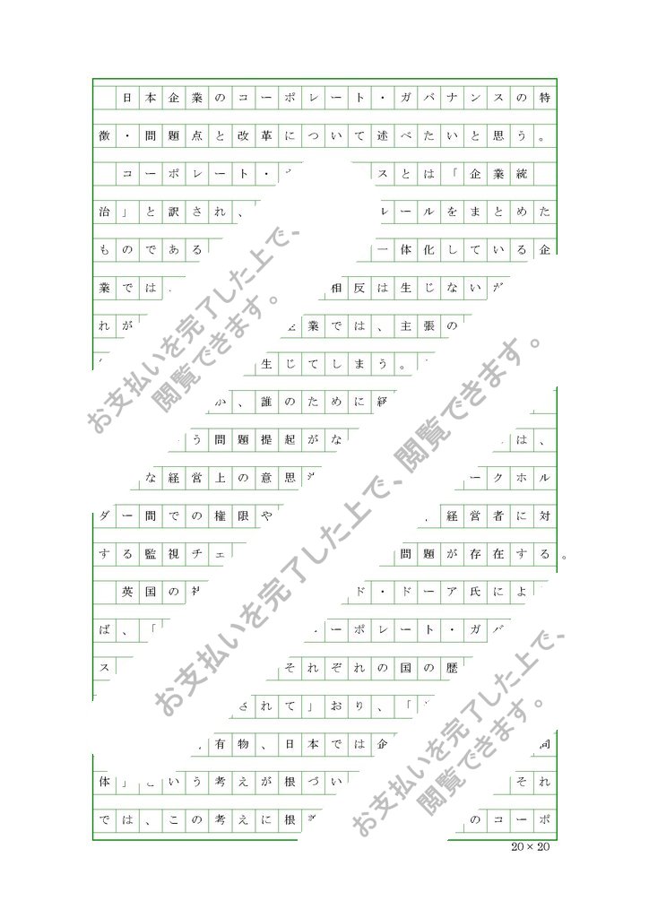 日本企業のコーポレート・ガバナンスの特徴・問題点と改革について述べたいと思う。