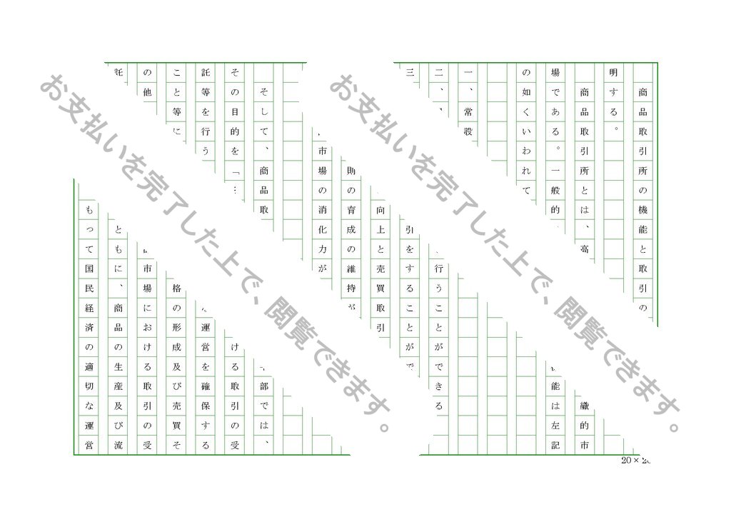 その目的を「…商品取引所における取引の受託等を行う者の業務の適正な運営を確保すること等により、商品の価格の形成及び売買その他の取引並びに商品市場における取引の受託を公正にするとともに、商品の生産及び流通を円滑にし、もって国民経済の適切な運営及び商品市場における取引の委託者の保護に資すること」と規定し、商品取引所の社会経済的機能を左記の五つ挙げることができる。