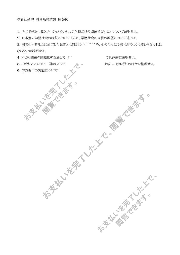1、 いじめの原因についてまとめ、それが学校だけの問題でないことについて説明せよ。