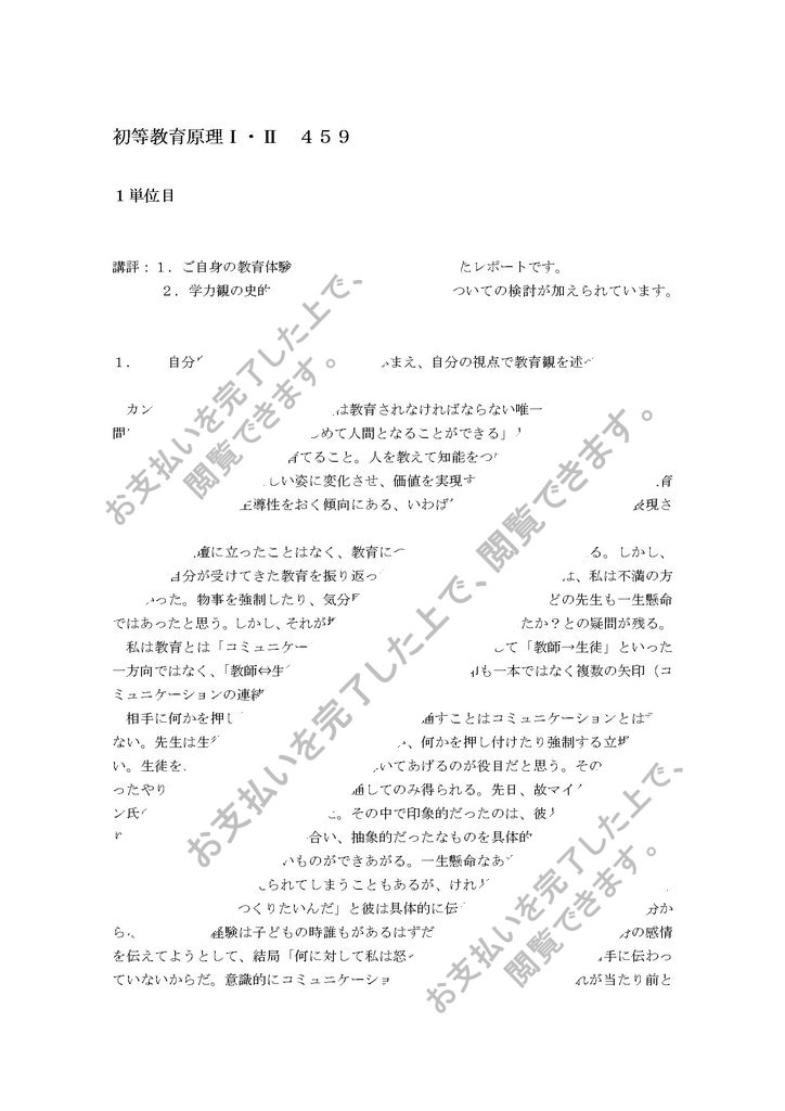 講評:1.ご自身の教育体験を根拠に詳しくまとめられたレポートです。