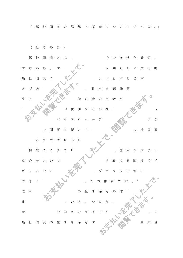 「福祉国家の思想と原理について述べよ。」