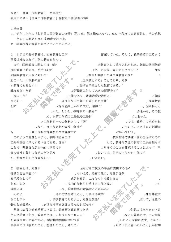 621 図画工作科教育Ⅰ 2単位分