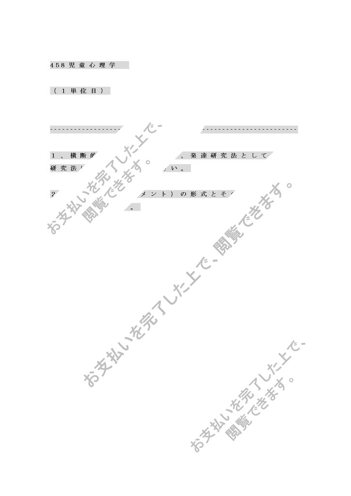 458児童心理学(4単位分)お買い得 word版合格レポート 2010年度 明星大学