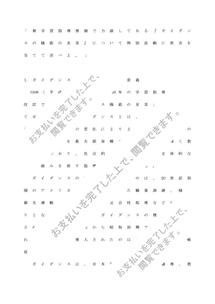 「新学習指導要領で力説してある『ガイダンスの機能の充実』について特別活動に焦点を当てて述べよ。」
