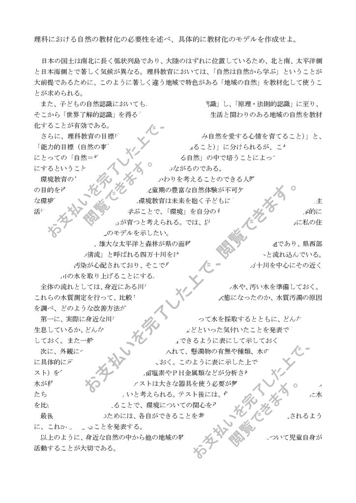 理科における自然の教材化の必要性を述べ、具体的に教材化のモデルを作成せよ。
