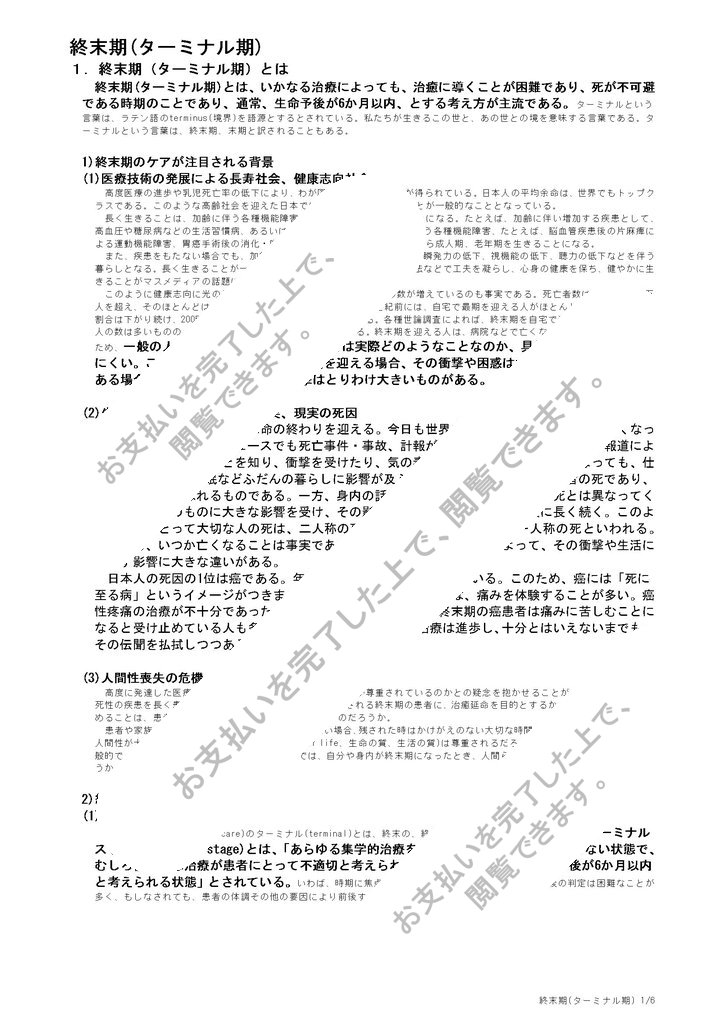 終末期(ターミナル期)とは、いかなる治療によっても、治癒に導くことが困難であり、死が不可避である時期のことであり、通常、生命予後が6か月以内、とする考え方が主流である。ターミナルという言葉は、ラテン語のterminus(境界)を語源とするとされている。私たちが生きるこの世と、あの世との境を意味する言葉である。ターミナルという言葉は、終末期、末期と訳されることもある。