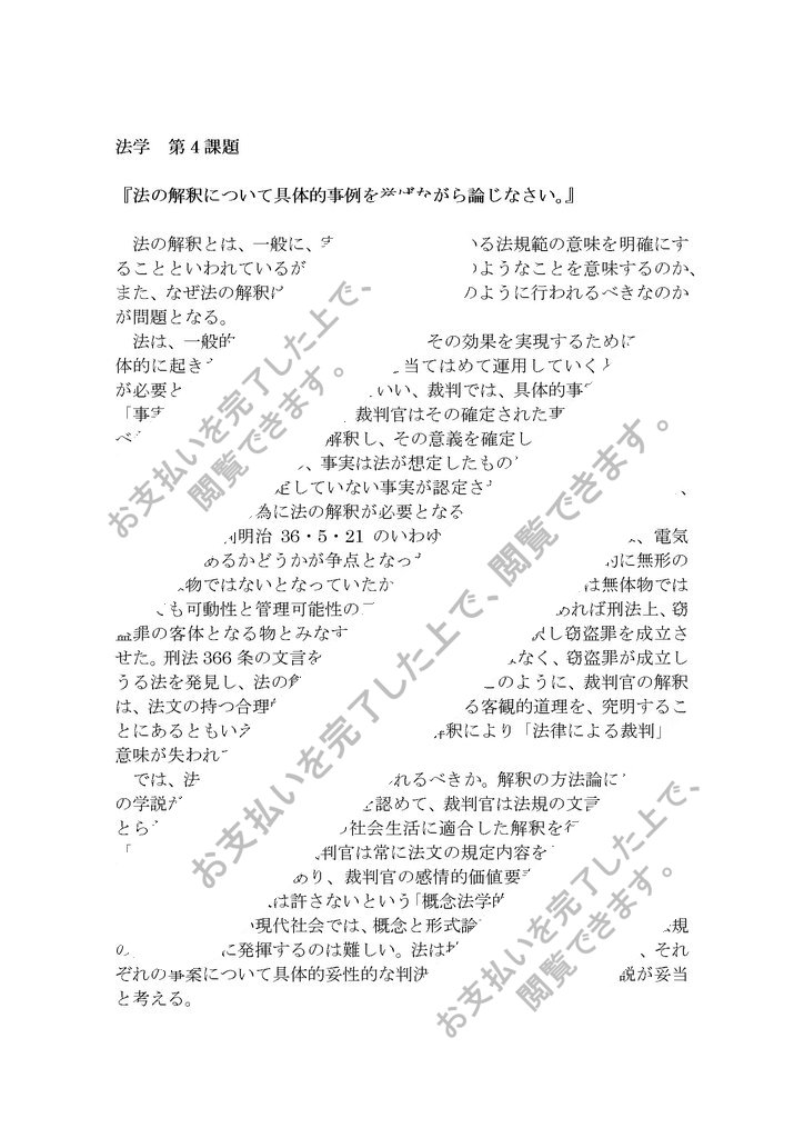 『法の解釈について具体的事例を挙げながら論じなさい。』