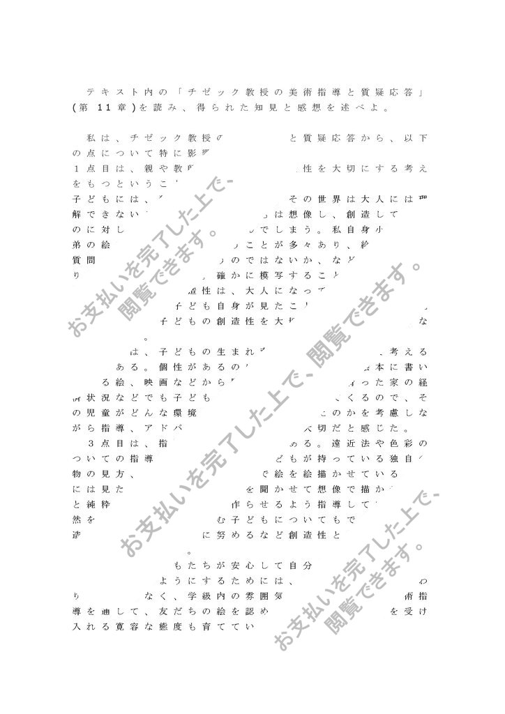 テキスト内の「チゼック教授の美術指導と質疑応答」(第11章)を読み、得られた知見と感想を述べよ。