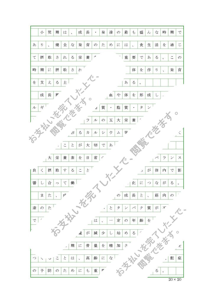 小児期は、成長・発達の最も盛んな時期であり、健全な発育のためには、食生活を通じて摂取される栄養素が大変重要である。この時期に摂取される栄養素は、体を作り、発育を支える土台となるものである。