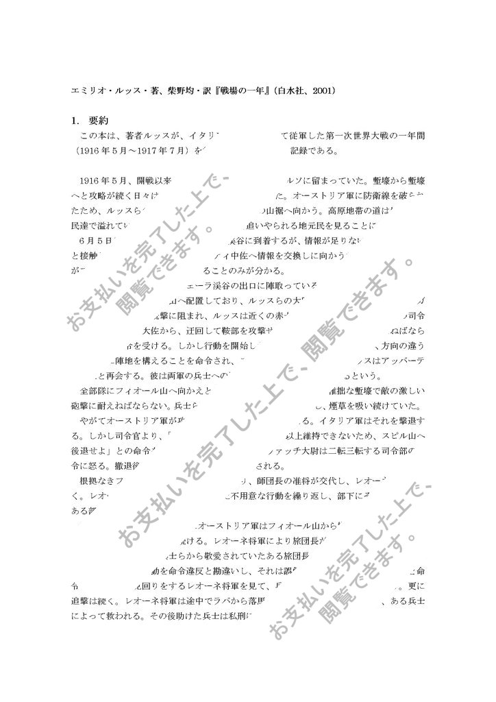 この本は、著者ルッスが、イタリア軍の将校として従軍した第一次世界大戦の一年間(1916年5月~1917年7月)を後に振り返って書いた記録である。
