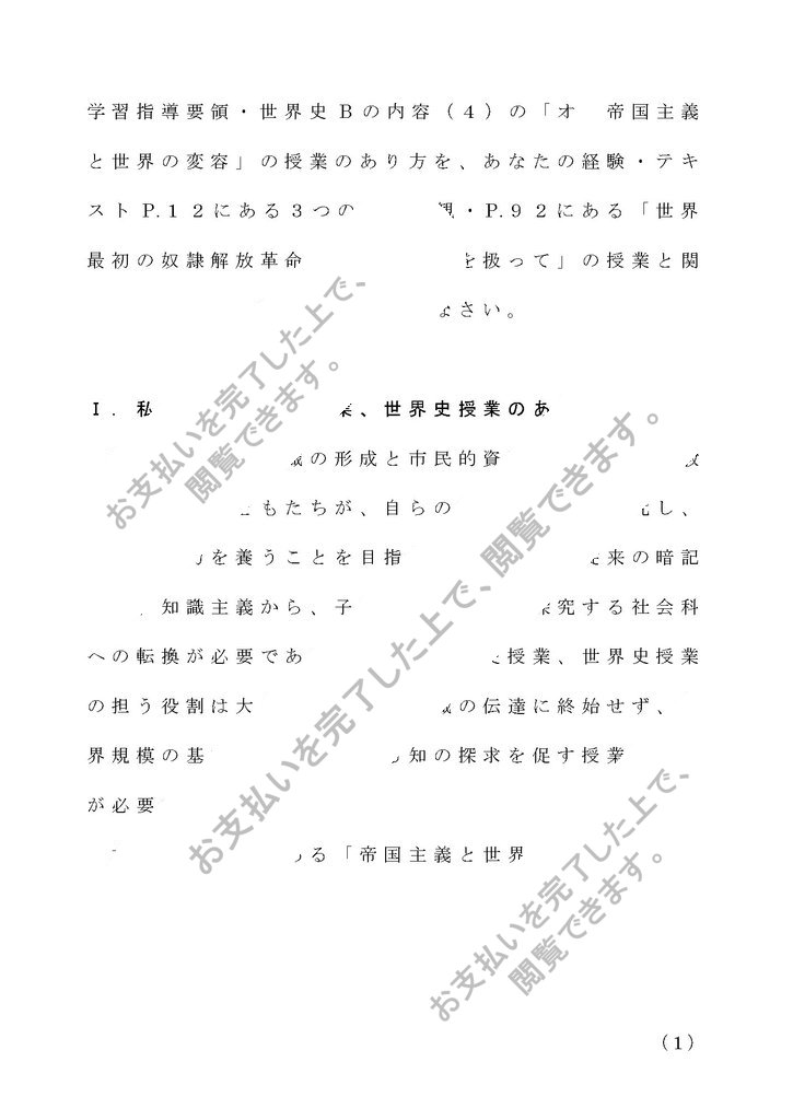 Ⅰ.私の考える歴史授業、世界史授業のあり方