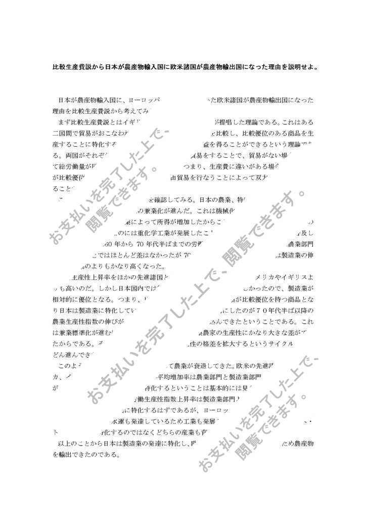 比較生産費説から日本が農産物輸入国に欧米諸国が農産物輸出国になった理由を説明せよ。