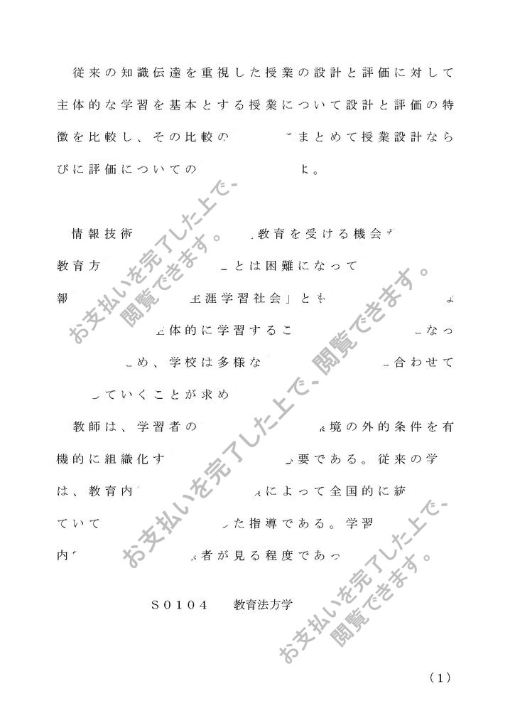 佛教大学、S0104教育方法学の第1設題のレポートです。