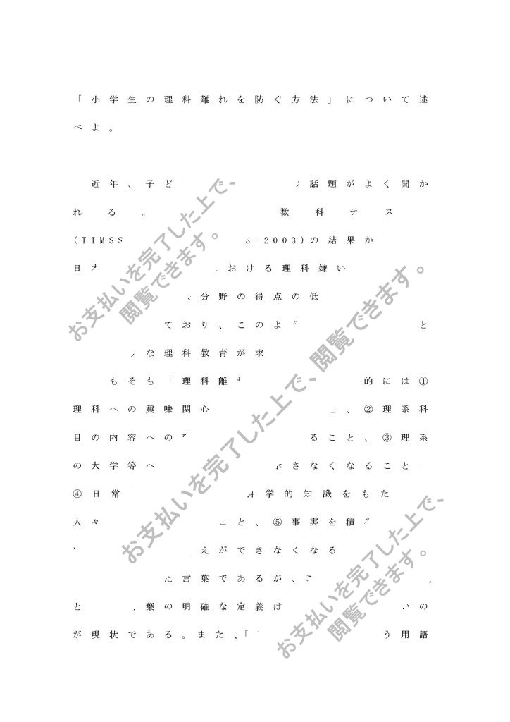 「小学生の理科離れを防ぐ方法」について述べよ。