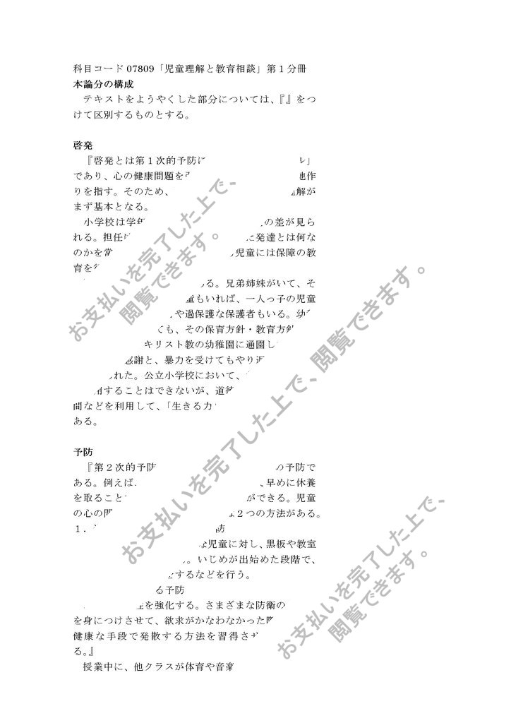 科目コード07809「児童理解と教育相談」第1分冊