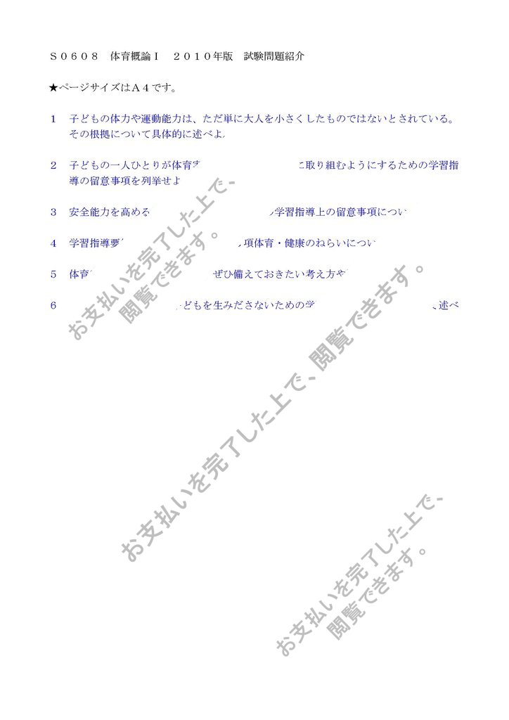 S0608 体育概論Ⅰ 2010年版 試験問題紹介