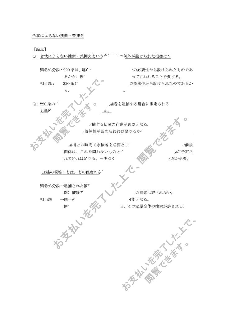 Q:令状によらない捜索・差押えという令状主義の例外が設けられた根拠は?