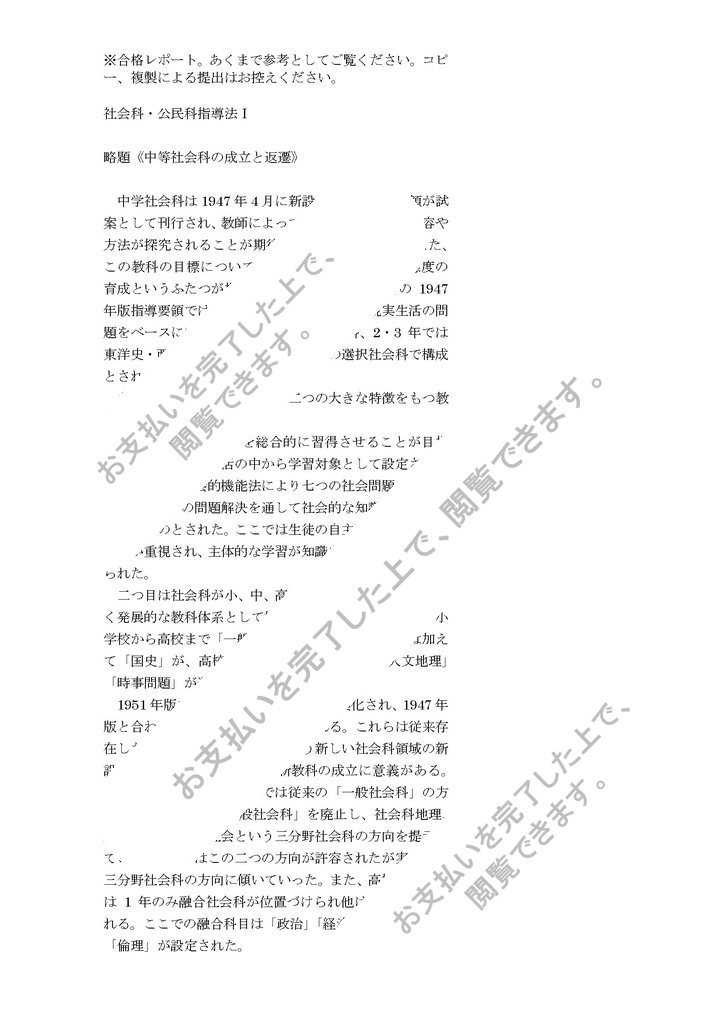 略題《中等社会科の成立と返遷》