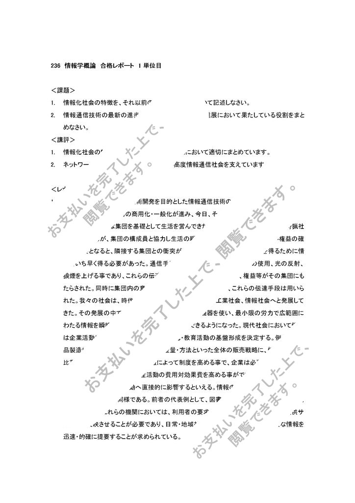 236 情報学概論 合格レポート 1単位目