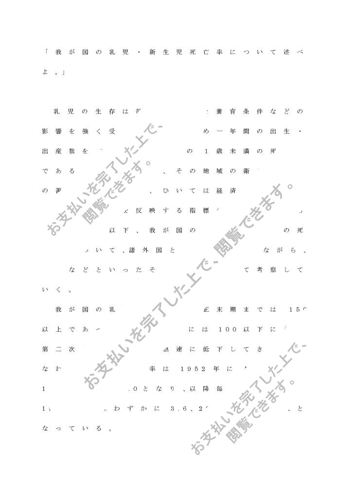 「我が国の乳児・新生児死亡率について述べよ。」