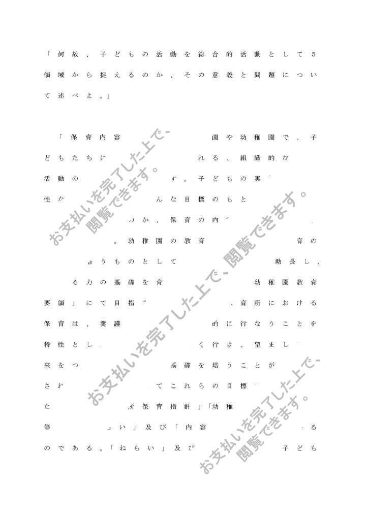 「何故、子どもの活動を総合的活動として5領域から捉えるのか、その意義と問題について述べよ。」