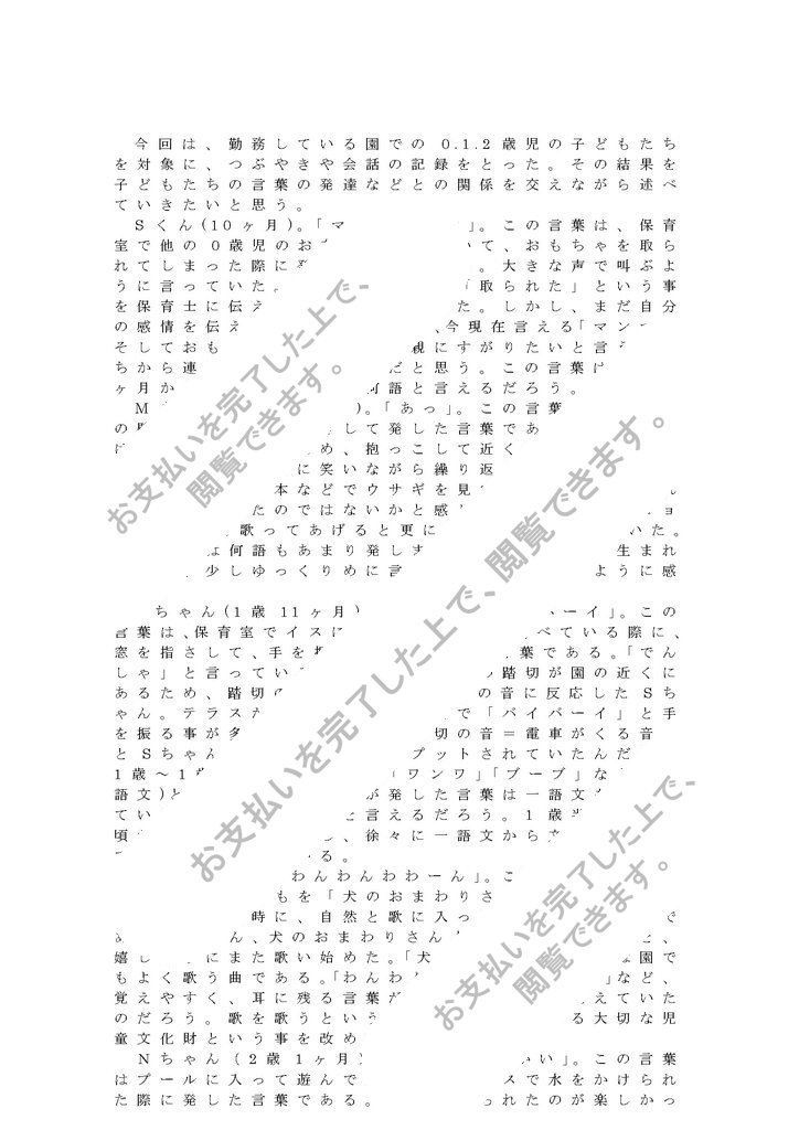 今回は、勤務している園での0.1.2歳児の子どもたちを対象に、つぶやきや会話の記録をとった。その結果を子どもたちの言葉の発達などとの関係を交えながら述べていきたいと思う。
