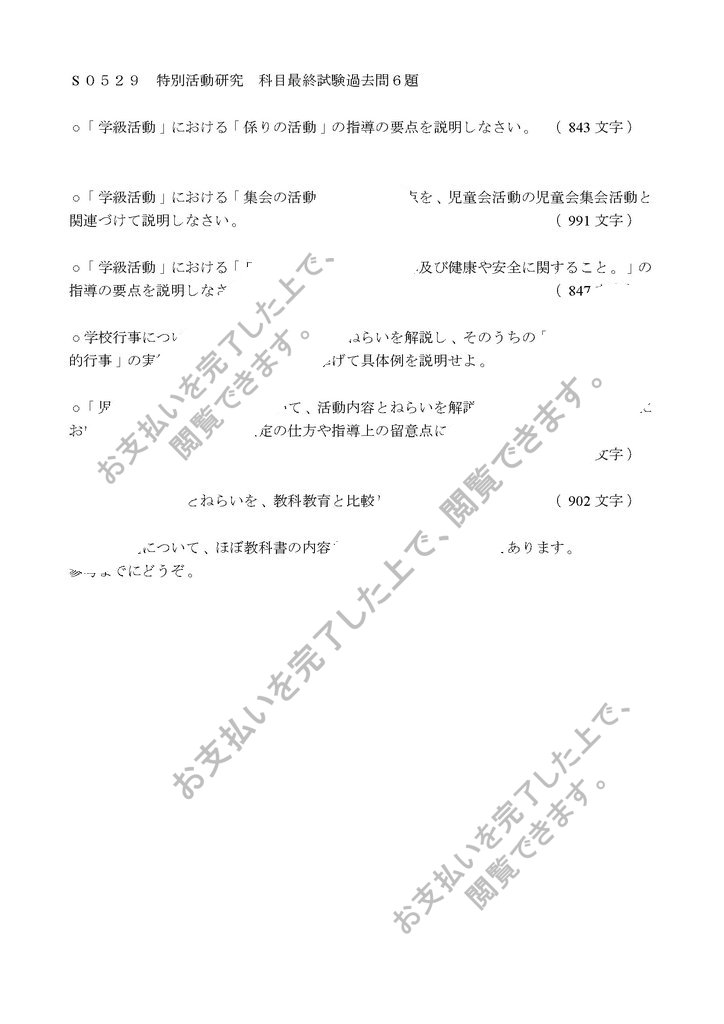 【S0529】特別活動研究科目最終試験過去問6題セット