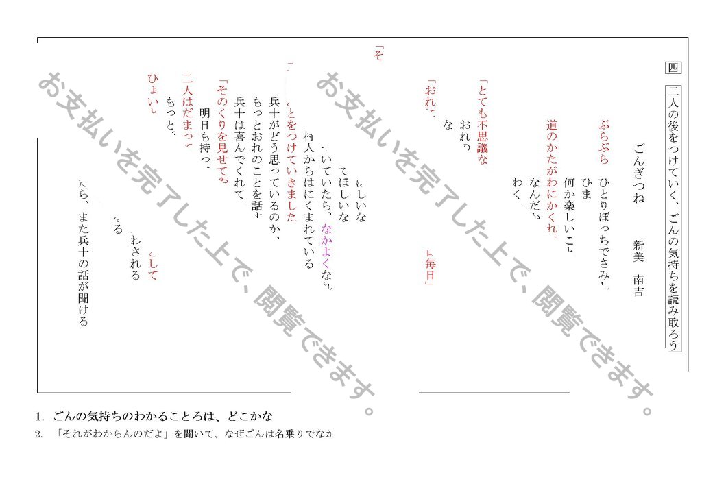 小学校4年生で学習する「ごんぎつね」の4場面と5場面の板書計画です。