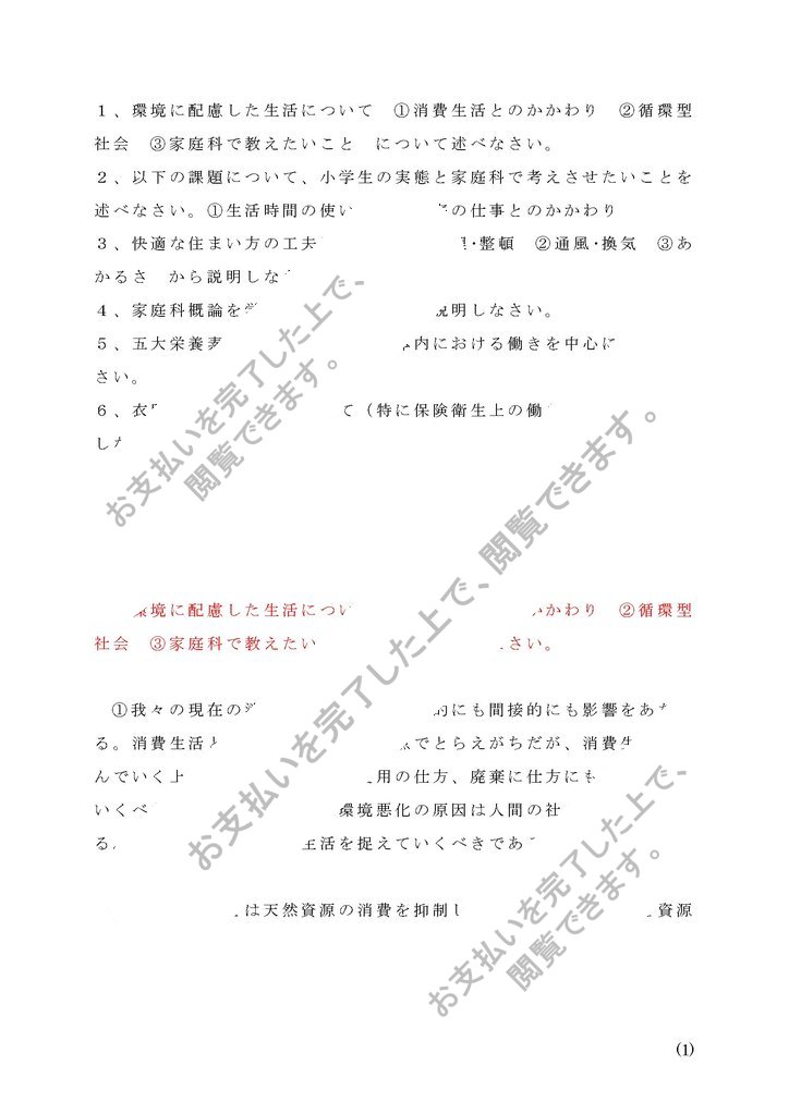 1、環境に配慮した生活について ①消費生活とのかかわり ②循環型社会 ③家庭科で教えたいこと について述べなさい。