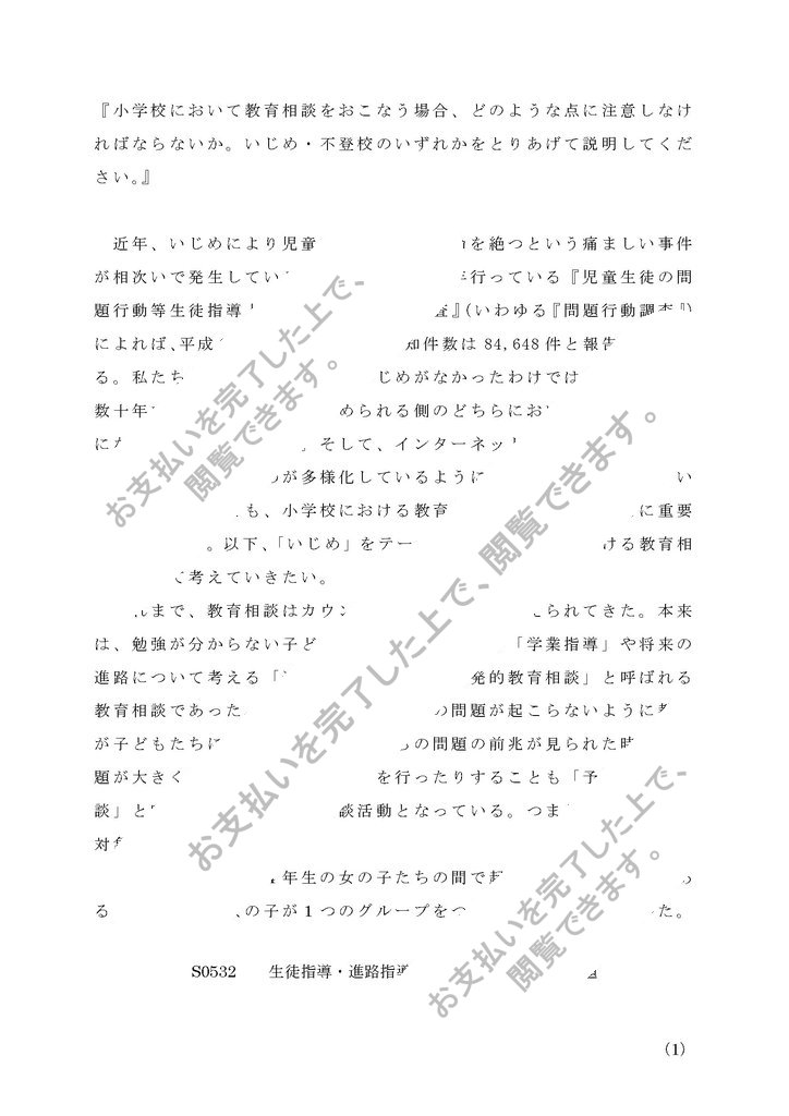 2011年 生徒指導・進路指導の研究(初等) S0532 レポートです。(A評価)