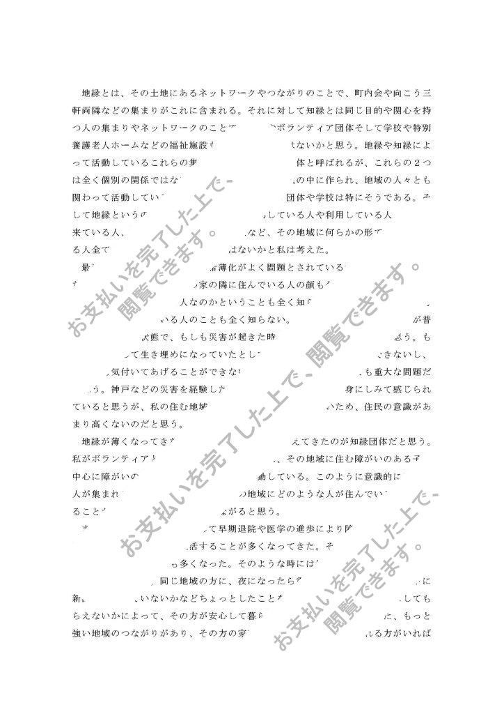 最近では、地域のつながりの希薄化がよく問題とされているが本当に大きな問題だと思う。実際に私も自分の家の隣に住んでいる人の顔も名前も知らないし、どのぐらいの年齢でどういう人なのかということも全く知らない。隣だけではなく自分の家の近所に住んでいる人のことも全く知らない。このような...