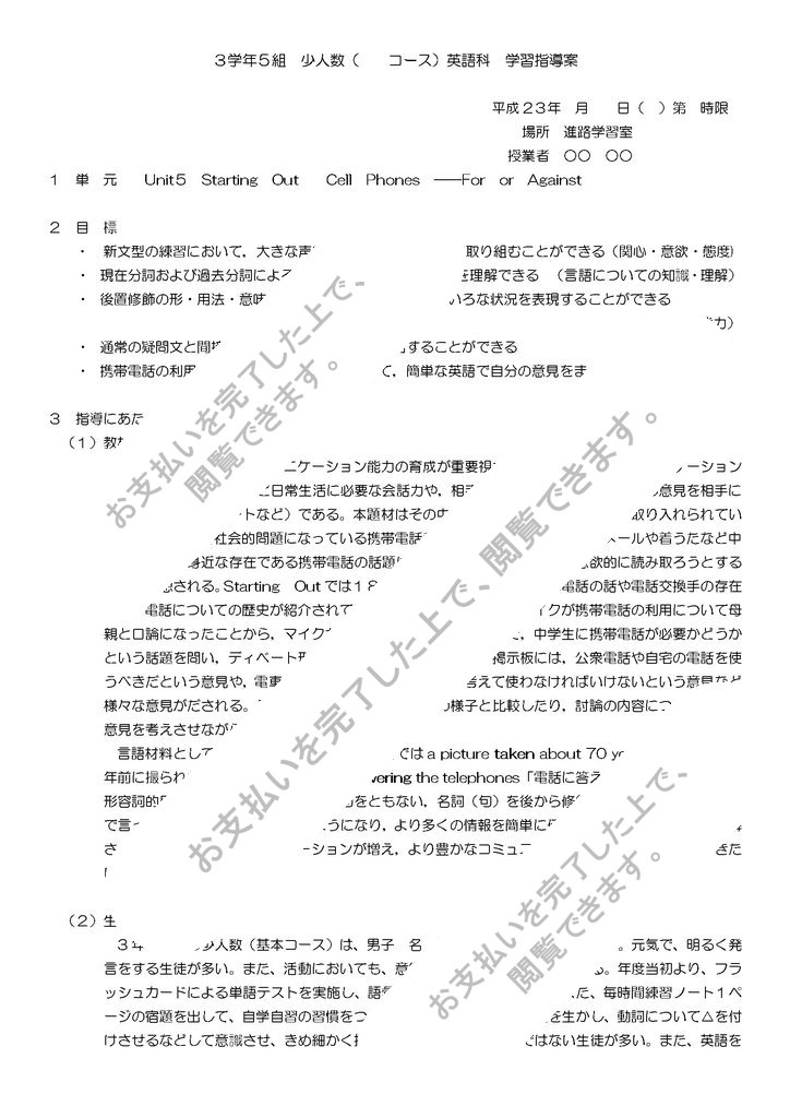 1 単 元 Unit5 Starting Out Cell Phones ――For or Against